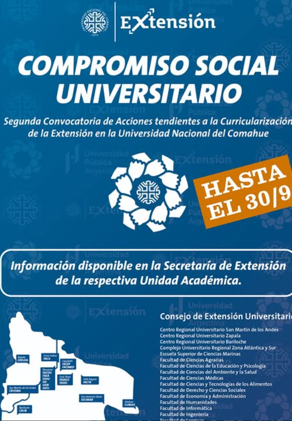 [...]Compromiso Social Universitario. Segunda convocatoria de acciones tendientes a la curricularización de la Extensión en la Universidad Nacional del Comahue [...]