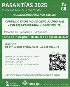 Llamado a inscripción a Pasantía convenio FACA - VERDEAGUA. Requisitos e información: CLICK AQUÍ