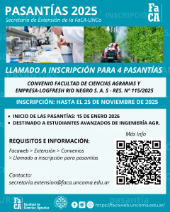 Llamado a Concurso Convenio Facultad de Ciencias Agrarias y empresa-LOGFRESH RIO NEGRO S. A. S. Requisitos e información CLICK AQUÍ