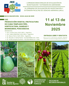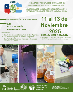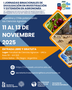 Del 11 al 13 de noviembre de 2025 la Facultad de Ciencias Agrarias de la Universidad Nacional del Comahue será sede un encuentro Internacional y de gran importancia para la zona en las temáticas de Investigación y Extensión.